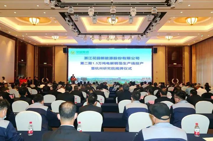• 【項目建設(shè)】花園新能源公司舉行第二期1.5萬噸電解銅箔生產(chǎn)線投產(chǎn)暨杭州研究院揭牌儀式